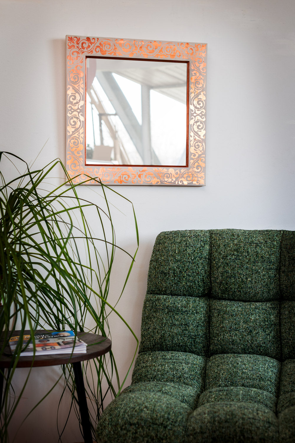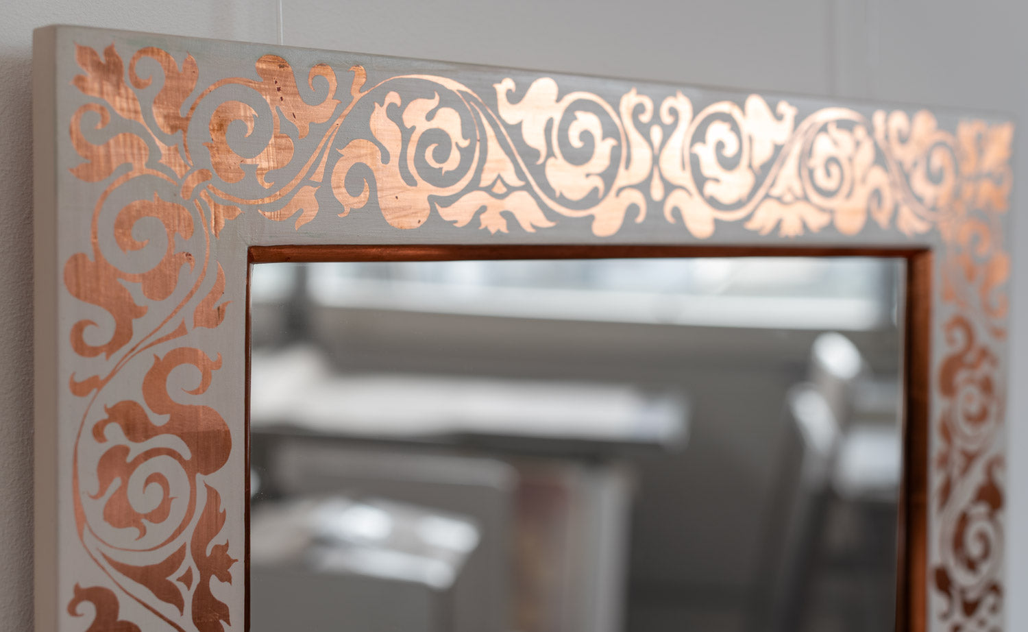 Spiegel mit Unikat-Vergolderrahmen - Kupfer/weiß