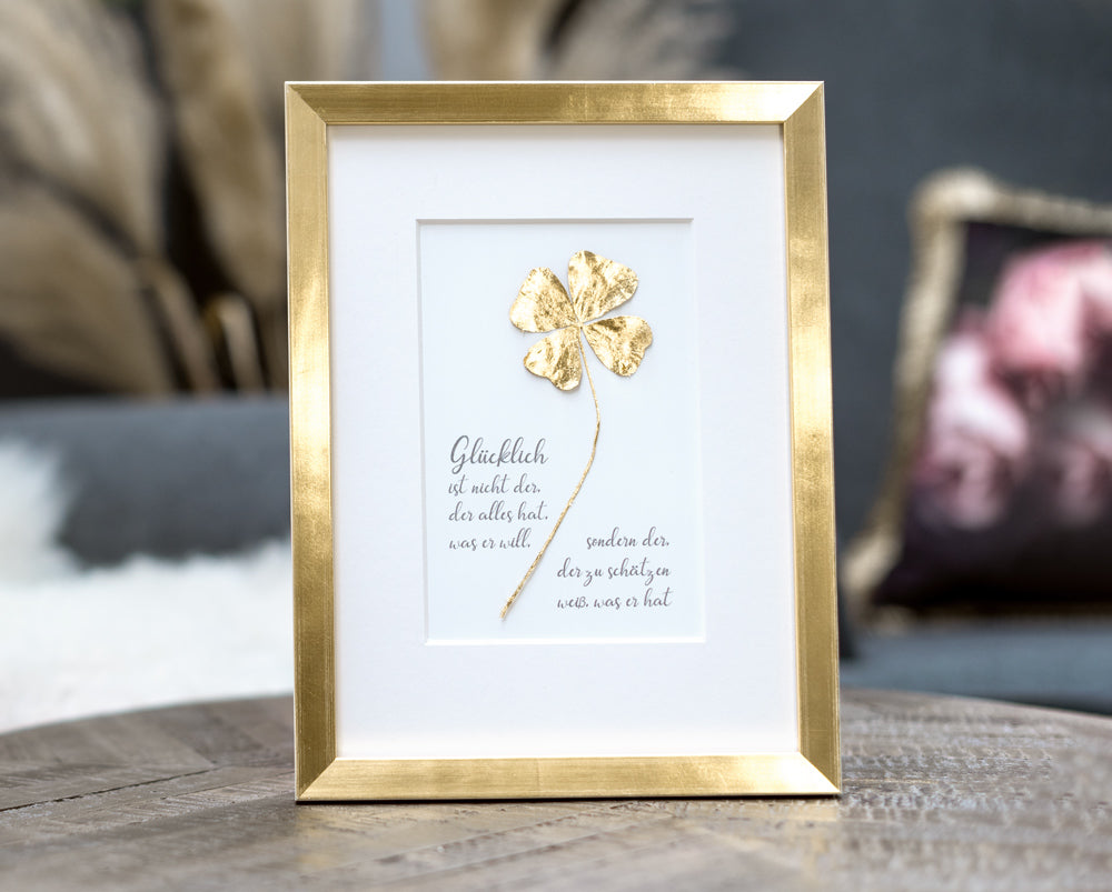 DownloadVergoldetes vierblättriges Kleeblatt mit Spruch
