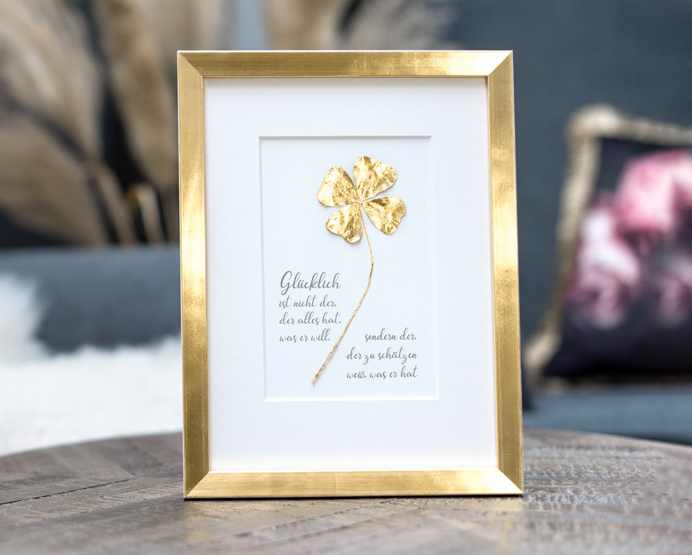 Vergoldetes vierblättriges Kleeblatt mit Spruch